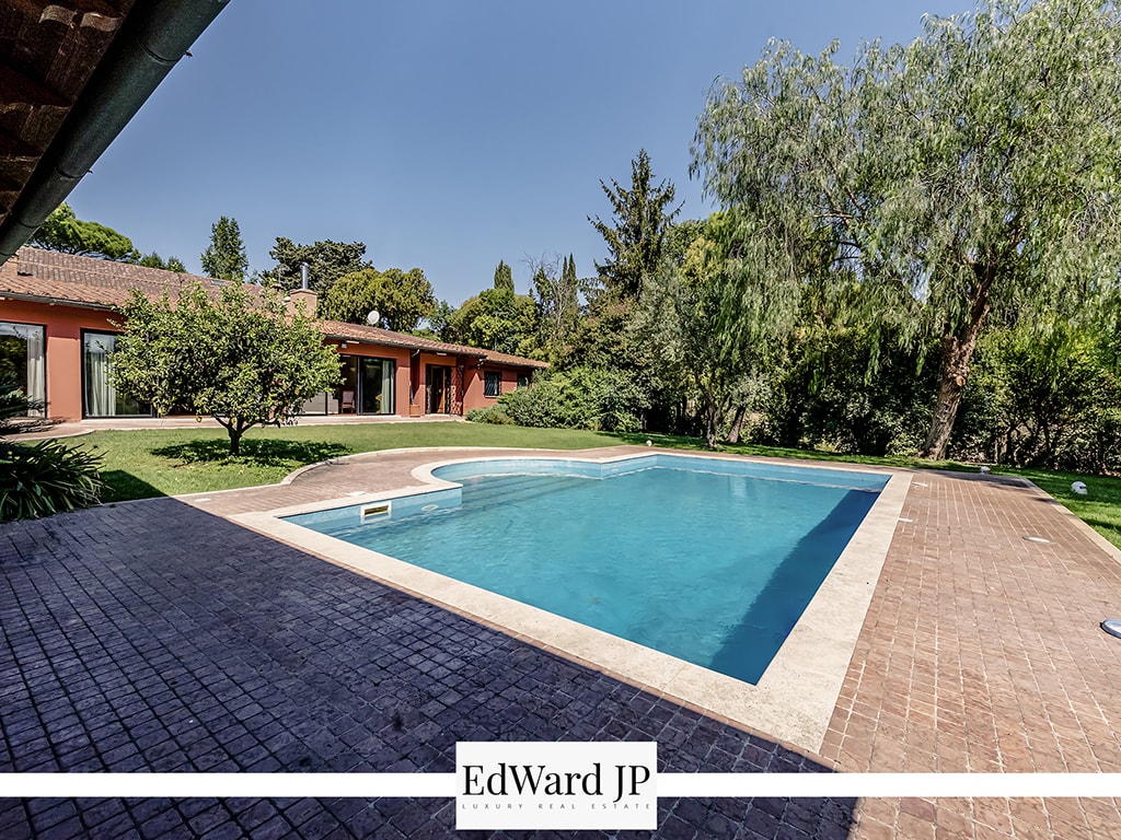 La villa si caratterizza da grandissime vetrate che affacciano su un ampio giardino, dove è presente una vera e propria zona dedicata alla convivialità, una zona relax e la piscina.